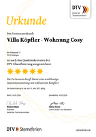 Ein ganz besonderer Ort für eine außergewöhnliche Auszeit: Die gemütlich eingerichtete Ferienwohnung verwöhnt mit gehobenem Komfort und einer vollumfänglichen Ausstattung. Ausgerichtet in den Innenhof der Villa Köpfler, lädt sie 2-3 Erwachsene und 1-2 Kinder zum Ausspannen ein. Die Bank vor dem Küchenbereich und die gemeinsam genutzte Pool-Terrasse erweitern den Wohnraum um echte Highlights. Cosy fühlt sich wie ein zweites Zuhause an. Am liebsten würde man zur Abreise die Koffer stehen lassen und mit leichtem Gepäck wiederkommen.